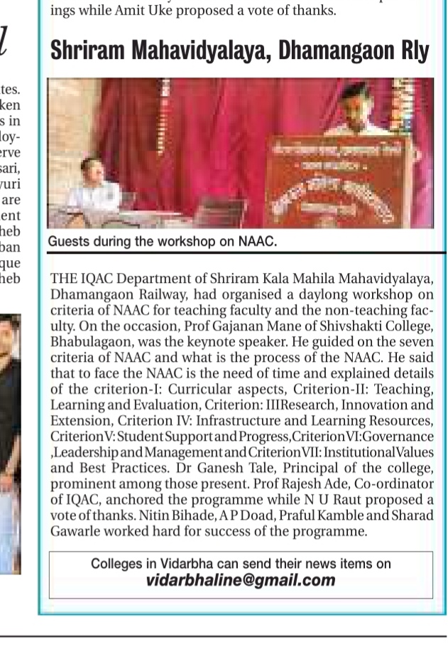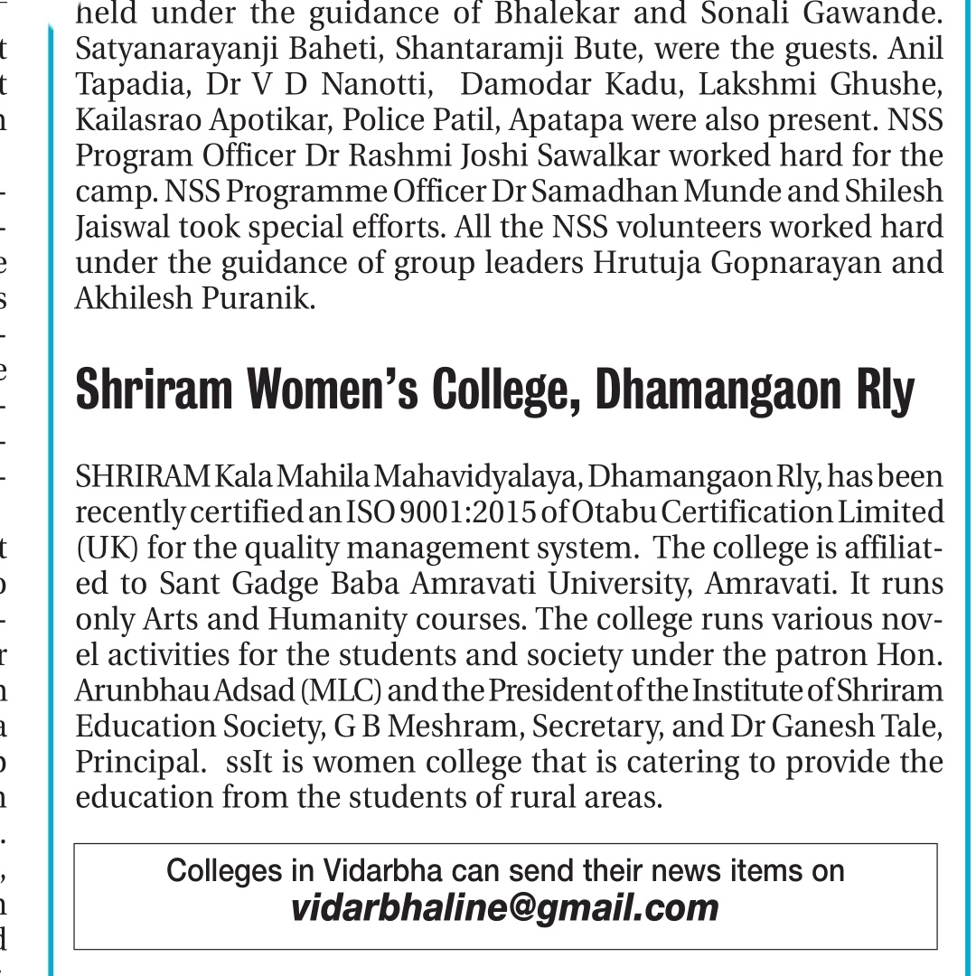 Shri Ram Kala Mahila Mahavidyalaya Dhamangaon(Rly) Dist. Amravati